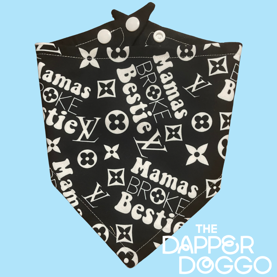 - 🖤 Mama’s Broke Bestie – For the dog who knows exactly why your Amazon cart is always full.